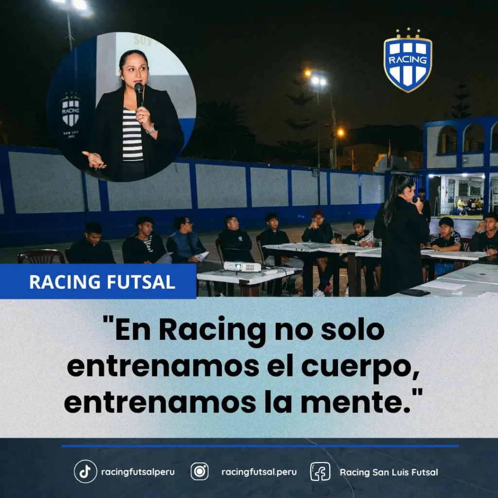 Desde Racing Sport Perú, estamos convencidos de que formar personas emocionalmente fuertes, conscientes y empáticas es clave para su desarrollo deportivo y personal. RAF no es solo fútbol. Es formación con propósito.